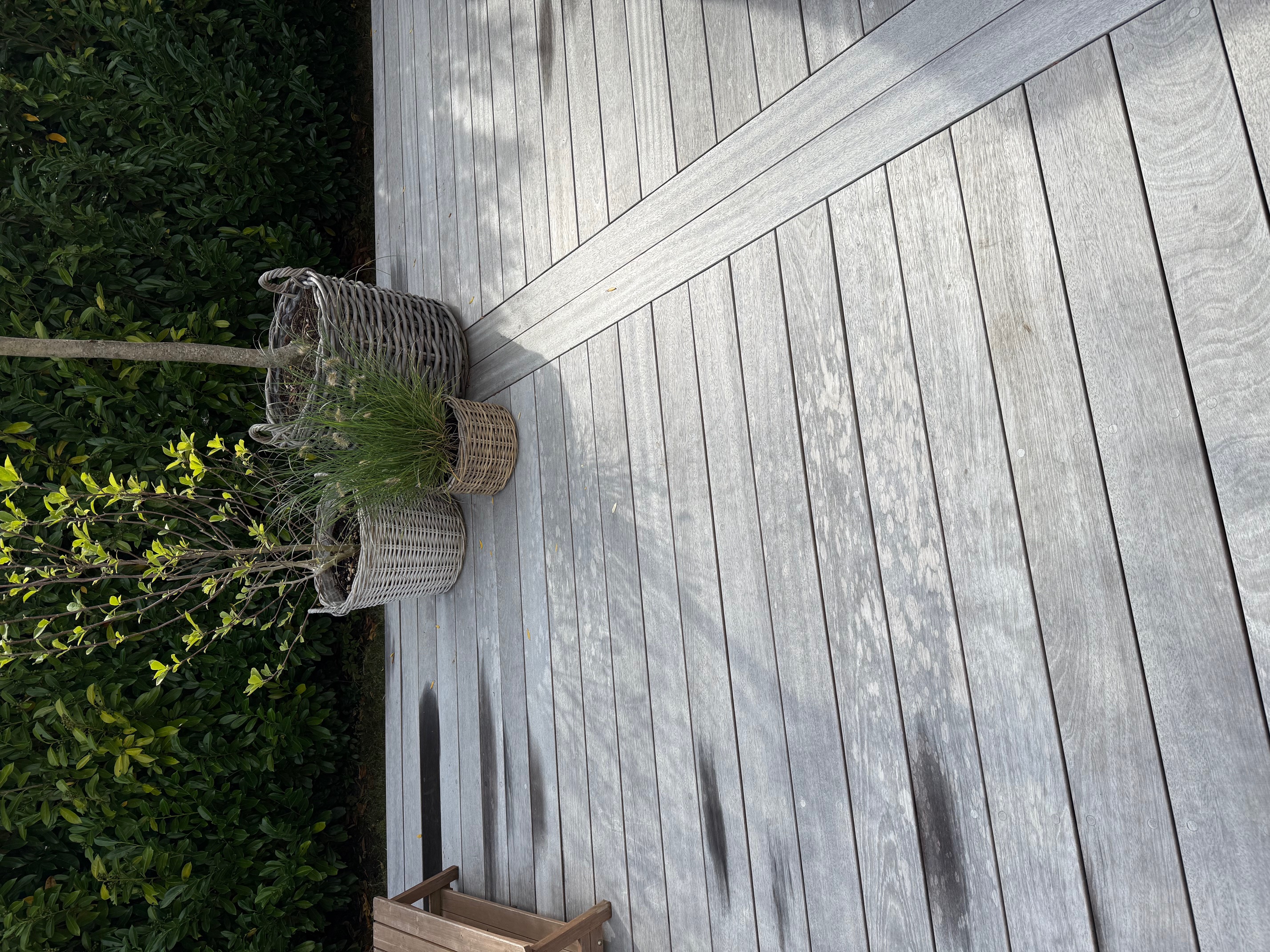 Derfor anbefaler vi regelmæssig vedligeholdelse af ipé- og hårdttræsterrasser, f.eks. årlig skumbehandling eller rens, for at forhindre opbygning af alger, lav, snavs og fugt.
